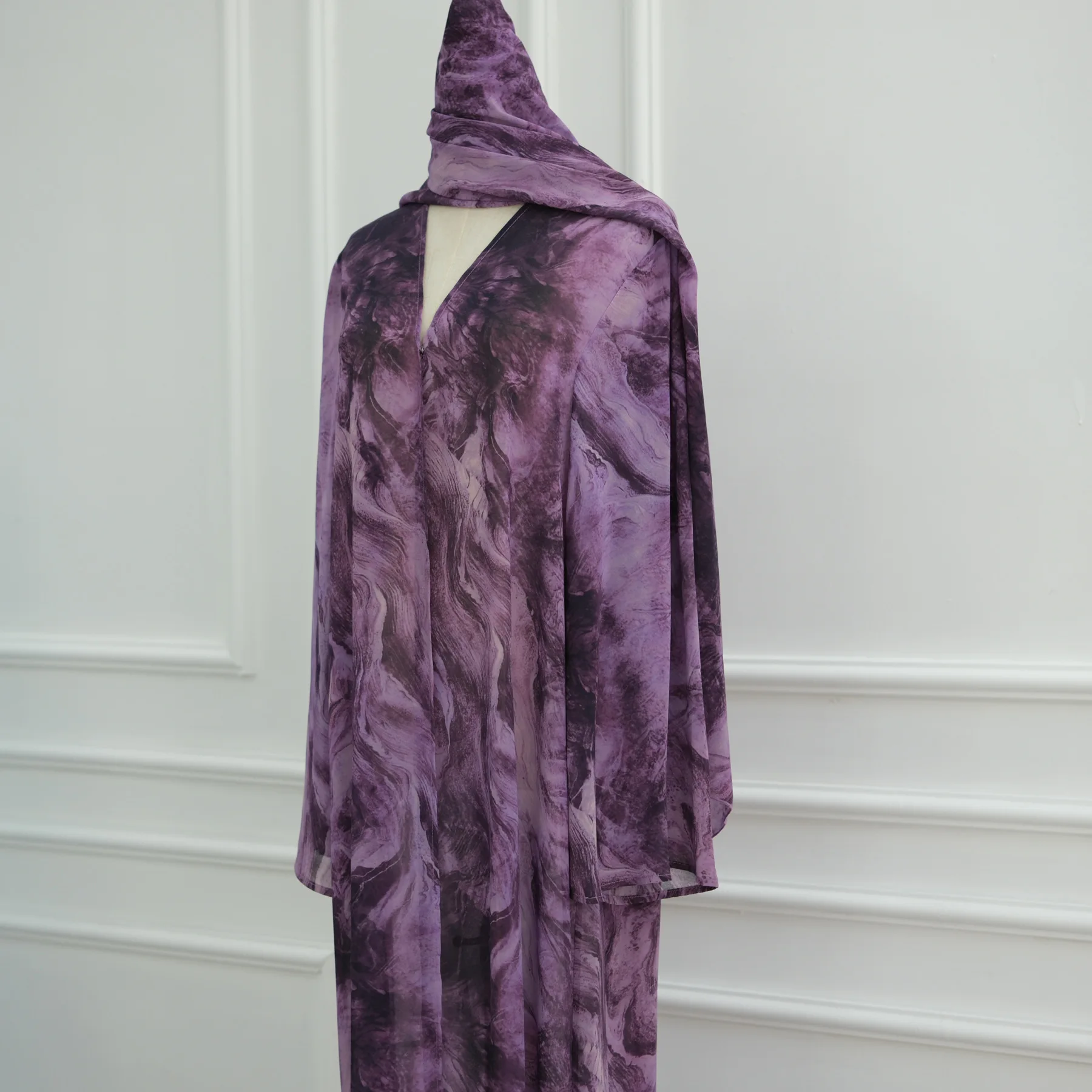 Summer Tie-Dye Chiffon Open Abaya with Scarf